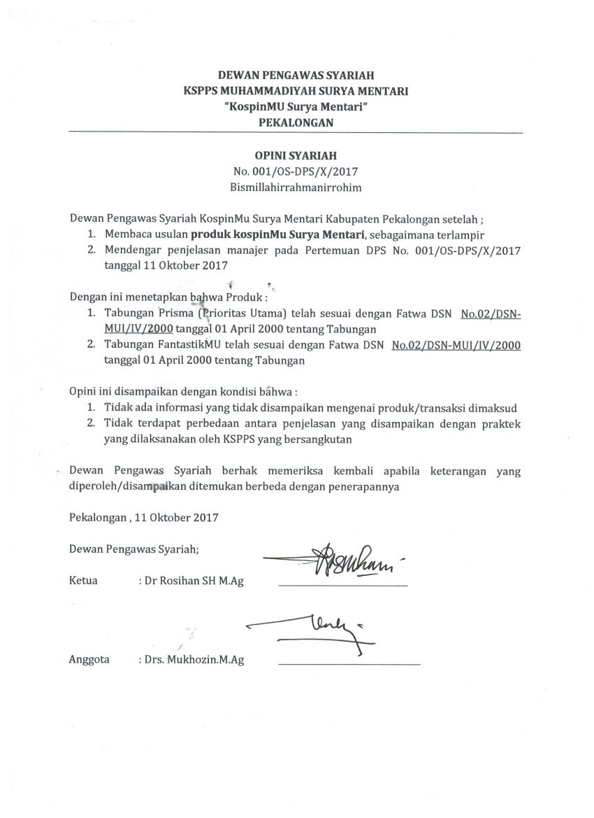 Mulai tahun 2018 ini kospinMu Surya Mentari meluncurkan salahsatu produk baru pembiayaan dengan margin yang sangat kompetitif yaitu Pembiayaan Griya Surya Kajen. Margin dari pembiayaan ini mulai 9,31 % pertahun dengan jangka waktu angsuran sampai 15 tahun